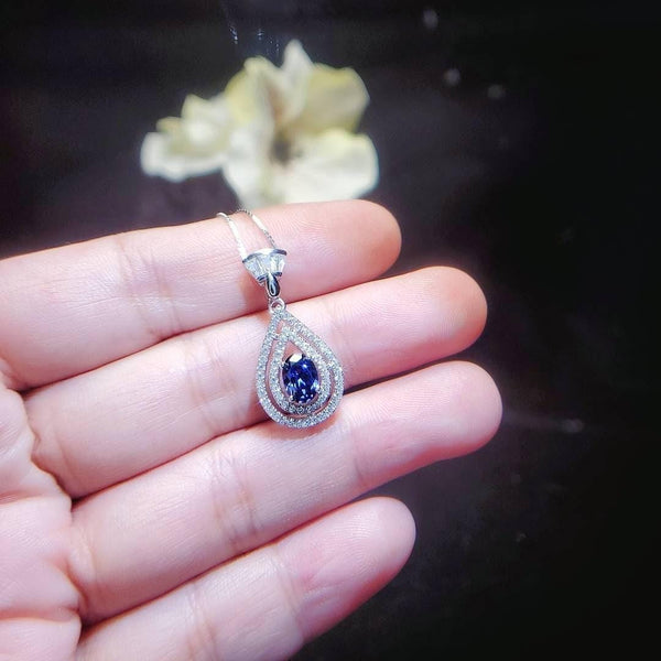 Tanzanite Necklace - December Birthstone - 18kgp @ Sterling Silver - Double Halo Lab Created Tanzanite Pendant Jewelry #435