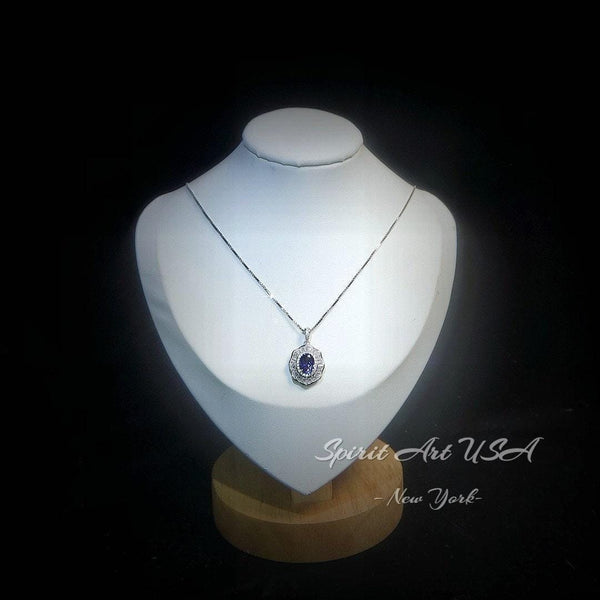 Tanzanite Necklace - Lotus Flower Pendant - 18KGP @ Sterling Silver - December Birthstone - Lab Created Blue Tanzanite Pendant #522