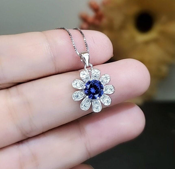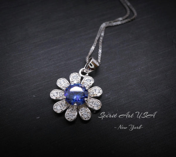 Tiny Tanzanite Sunflower Necklace Sterling Silver - December Birthstone - Tanzanite pendant Sterling Silver 053