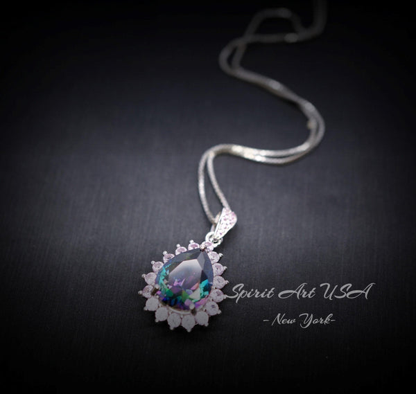 Large Rainbow Topaz Jewelry Pink Tourmaline Surrounded Halo Style