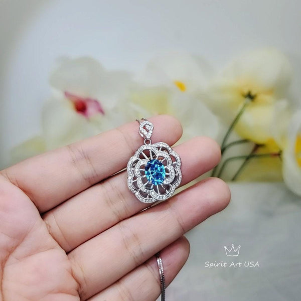 Blue Topaz Jewelry Large Peony flower Style