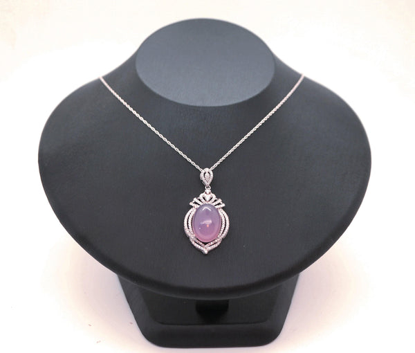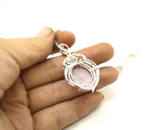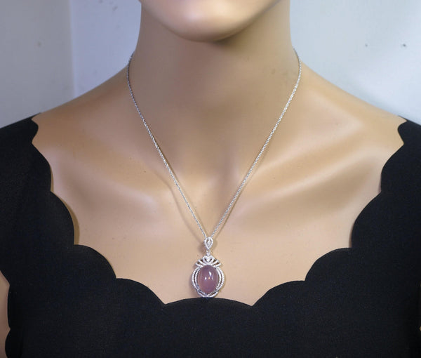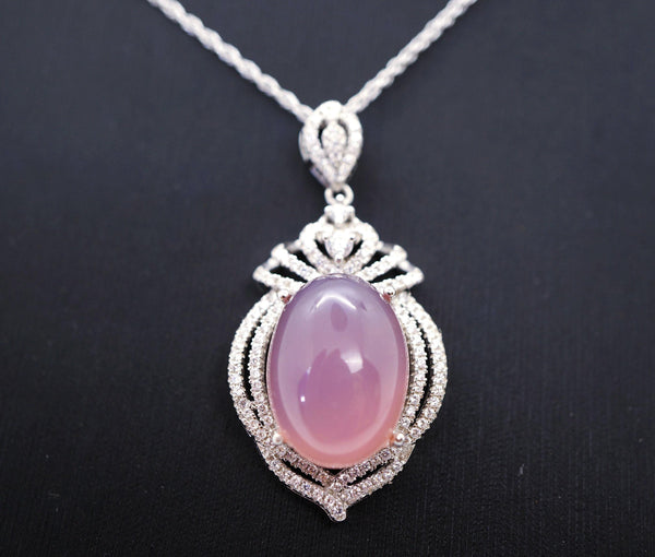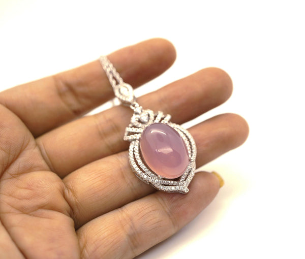 Large Pink Chalcedony Necklace - Sterling Silver Royal Gemstone Pink Gemstone Chalcedony Pendant , Wedding Jewelry #889