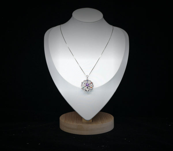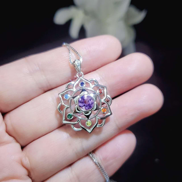The 7 chakra necklace represents the 7 spiritual forces in the human body, including the physical elements of the earth, water, fire, air & ether (space), and the elements of light and cosmic energy.