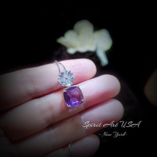 Large natural Amethyst Jewelry Diamond Four leaf clove Style