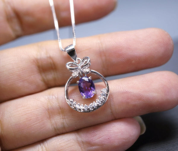 Natural amethyst necklace, sterling silver tiny teardrop necklace