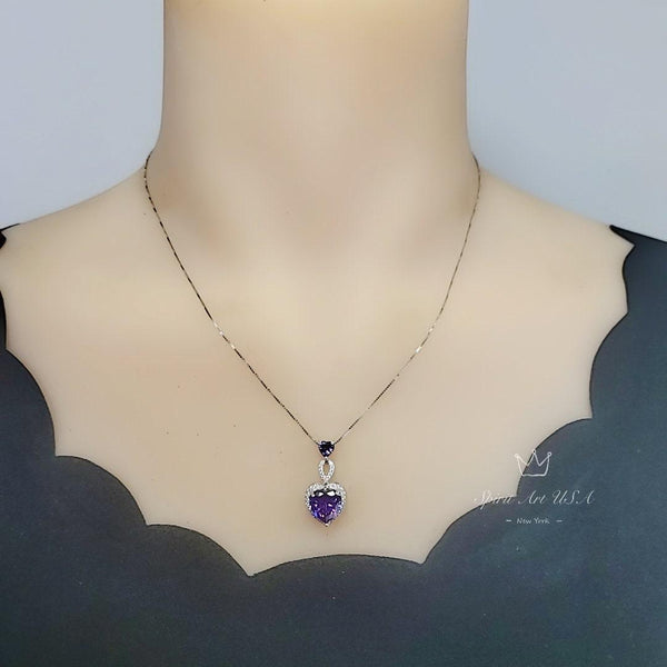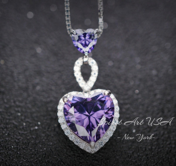 Genuine Amethyst Necklace - Double Heart Amethyst Jewelry - Full Sterling Silver Made February Birthstone Natural Gemstone Pendant #927