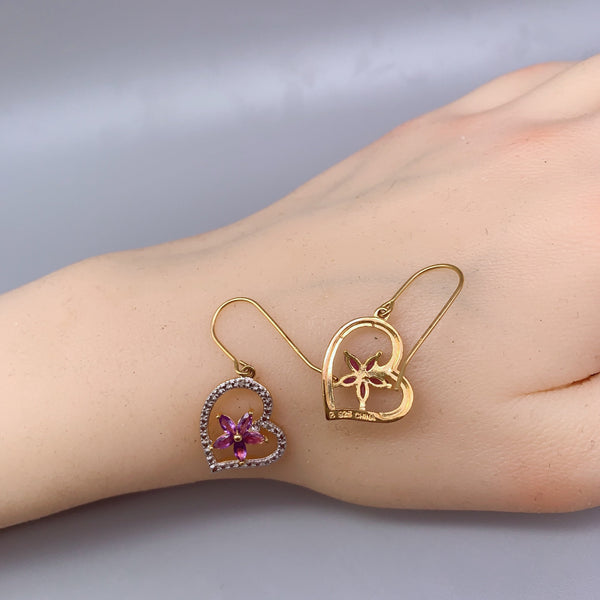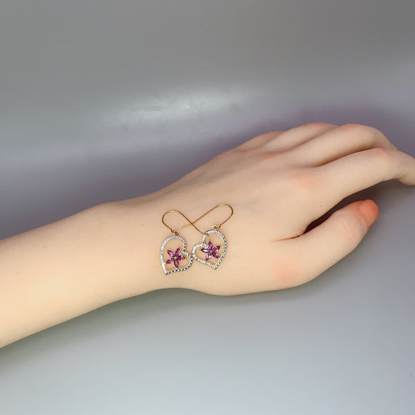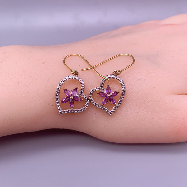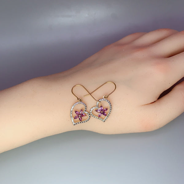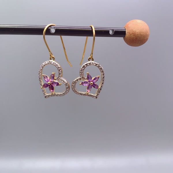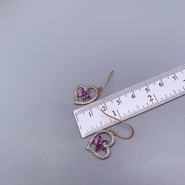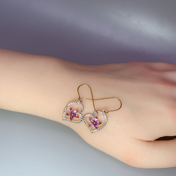Natural Amethyst Heart Earrings on sale dainty design with Full sterling silver coated by 24k gold