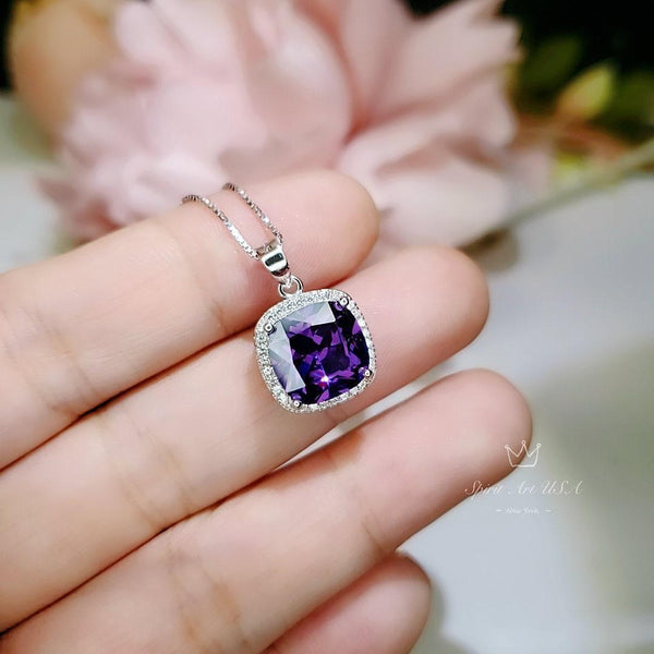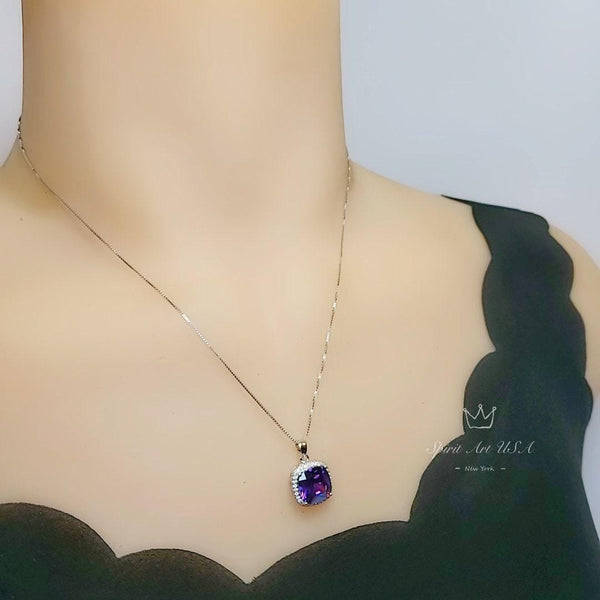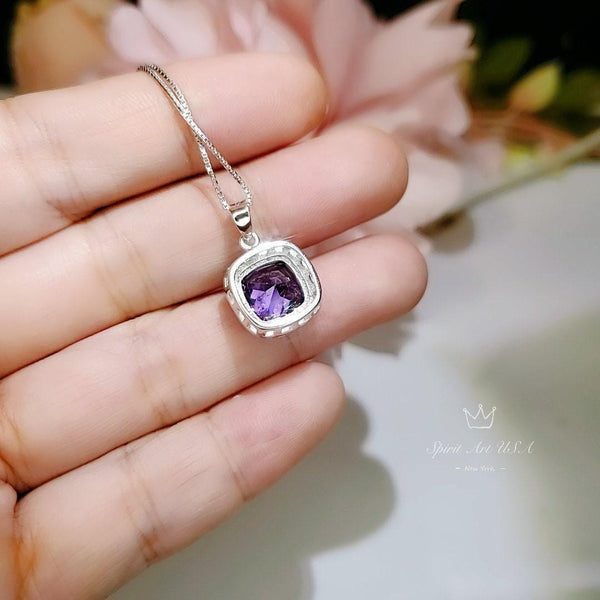 Large Amethyst Square Jewelry unique Artisan design full sterling silver made
