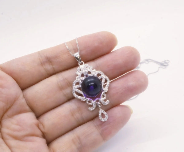 Natural Amethyst Necklace - Sterling Silver Tassel - Luxury Genuine Amethyst Pendant - Purple Gemstone Jewelry - 18KGP @ Sterling Silver