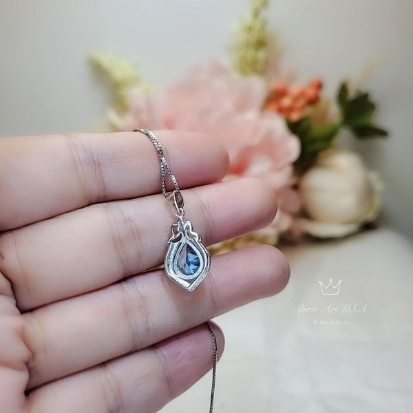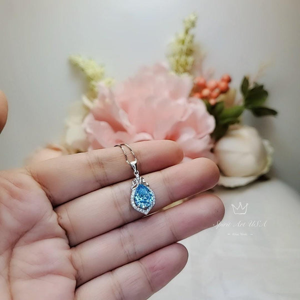 Aquamarine necklace Dainty sterling silver teardrop Style