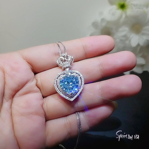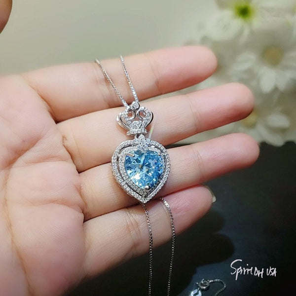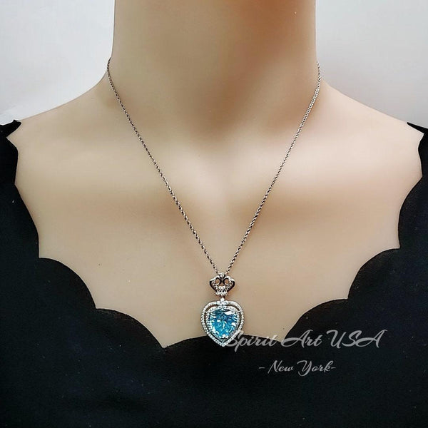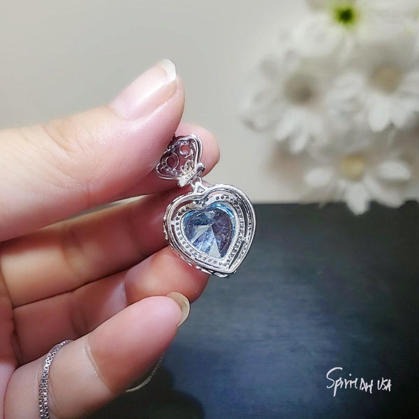 Large Blue Aquamarine Jewelry Double Halo Heart Pendant Style