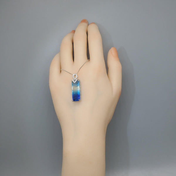 ◆Main stone:9*24 mm lab-created blue rainbow tourmaline gemstone