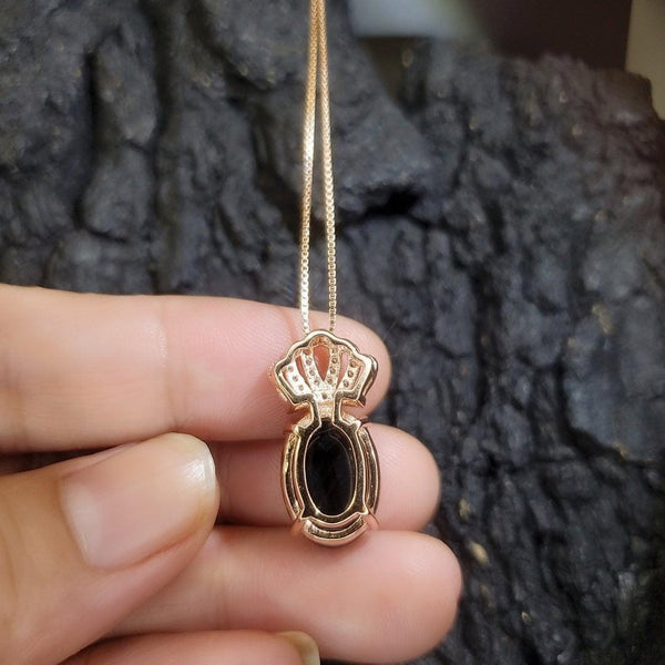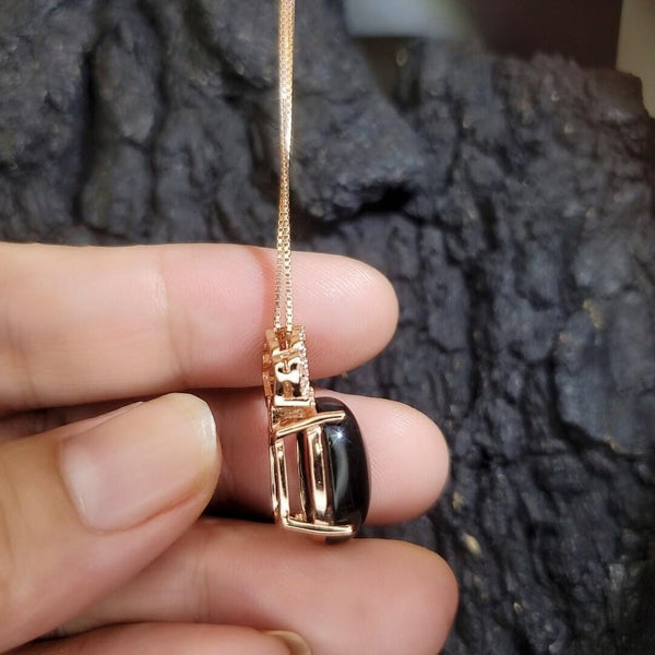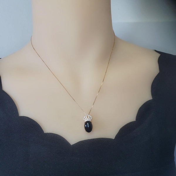 Materials: Black onyx, Rose gold coated sterling silver, rose gold.