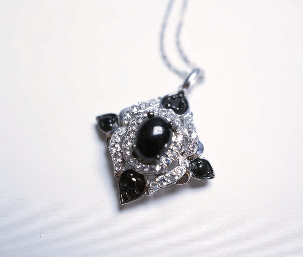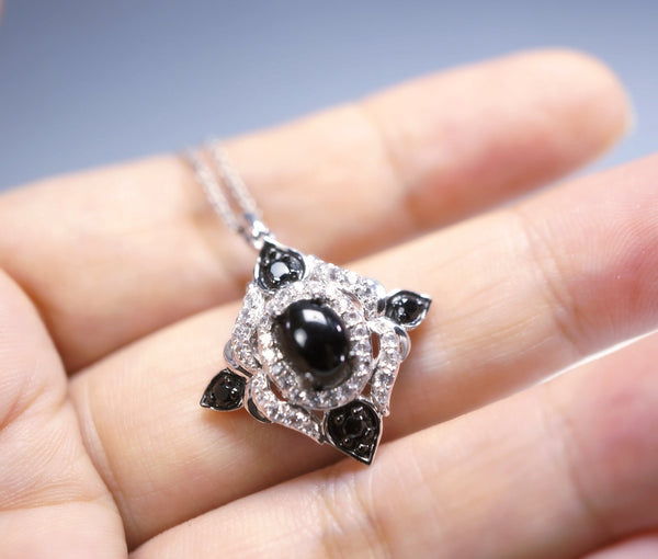 5*7mm black onyx decorated with black tourmaline and white sapphire