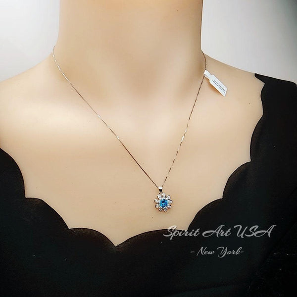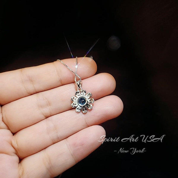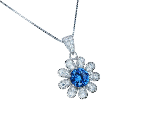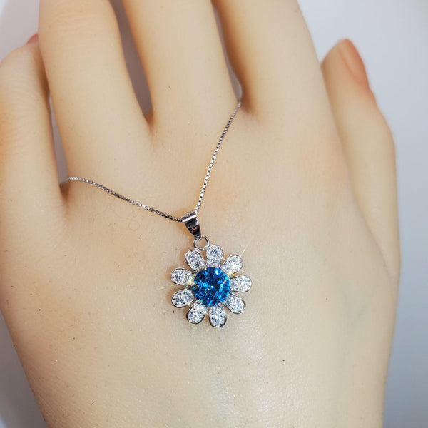 Blue Topaz Necklace - Blue Topaz Pendant - Sunflower Necklace - 18KGP Sterling Silver 047