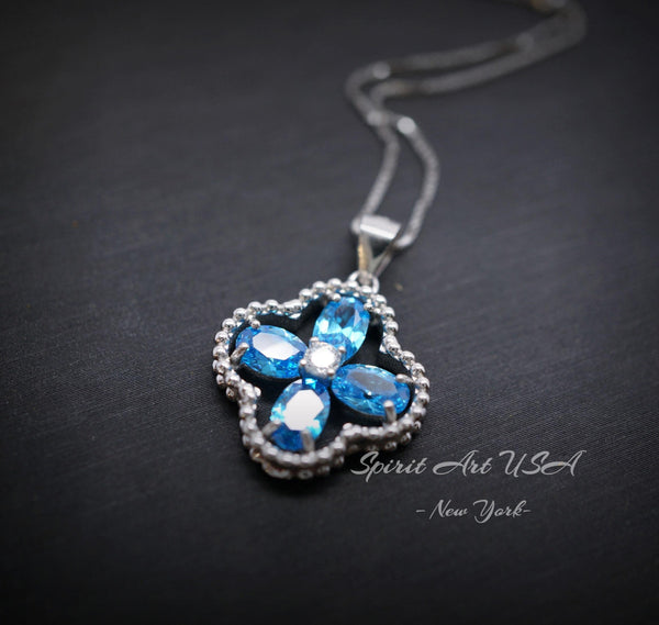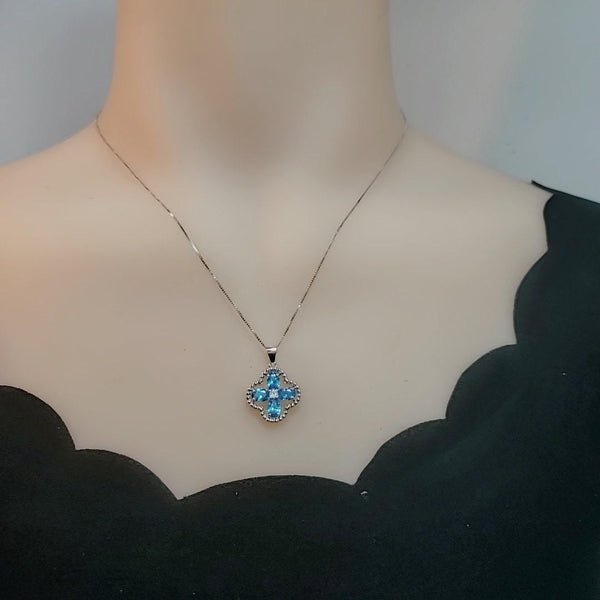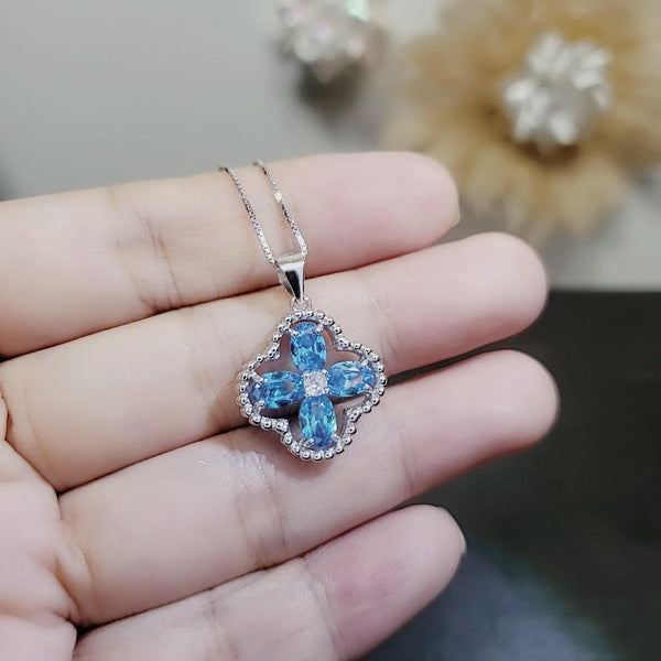 Blue Topaz Jewelry Four Leaf Clover Style Oval Cut