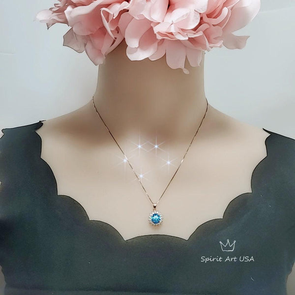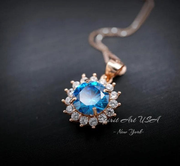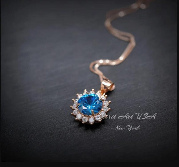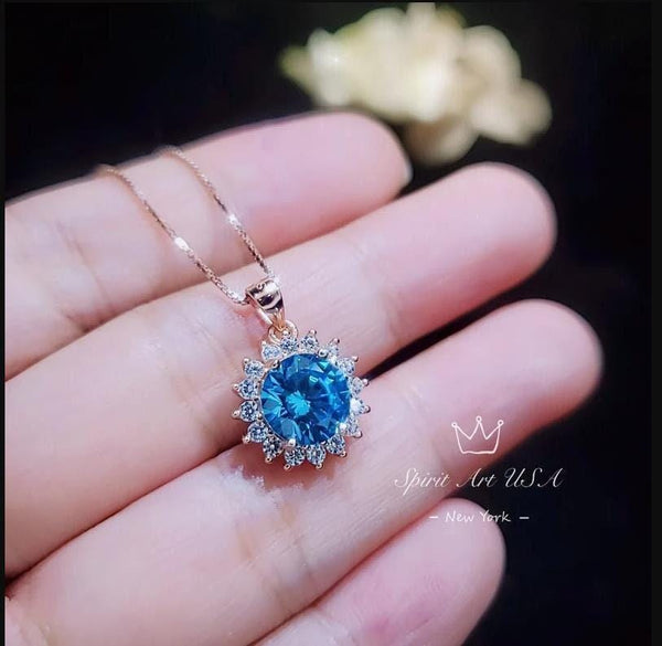 Deep London Blue Topaz Jewelry 8mm Roud Rose gold coated princess sunflower style