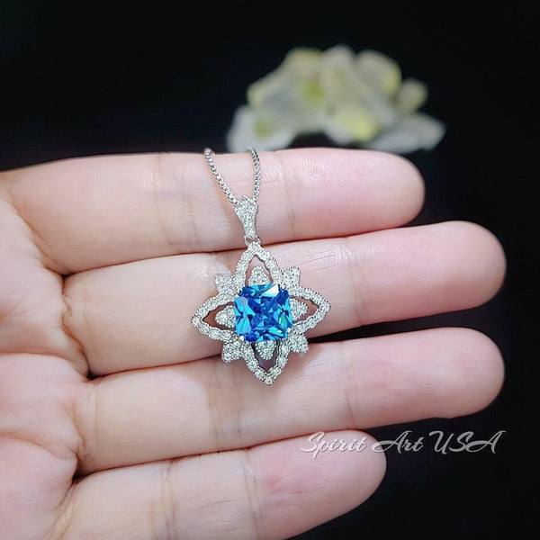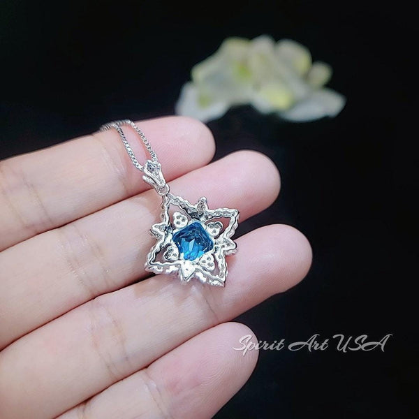 8mm square blue topaz Jewelry four-petal flower Style