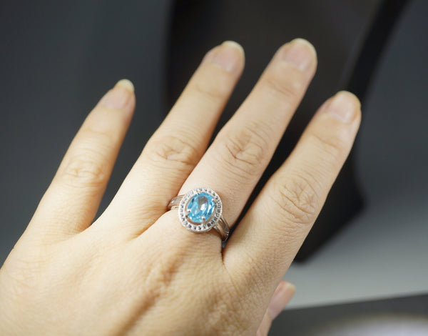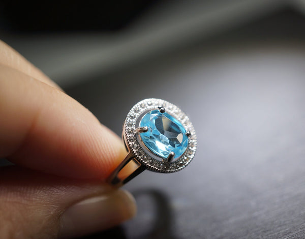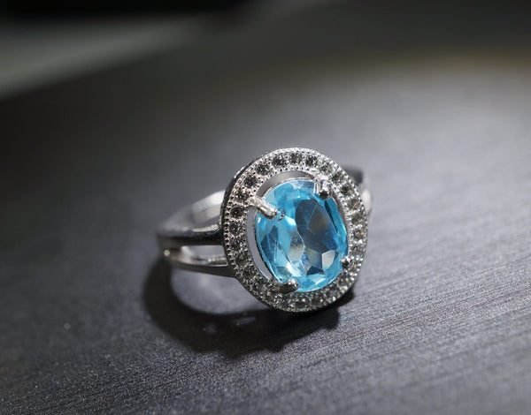 Natural Topaz Ring - Large Swiss Blue Topaz Solitaire Ring - Engagement Ring - Fine Gemstone Ring - Sterling Silver Cz Ring