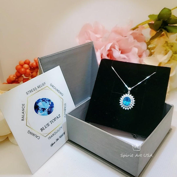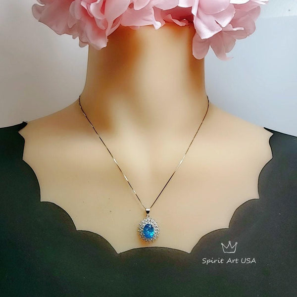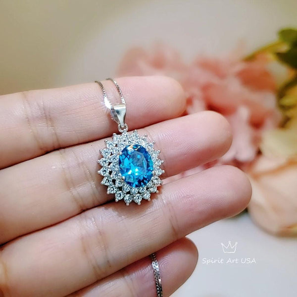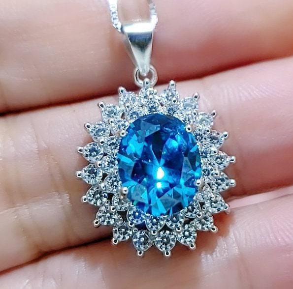 Large Blue Topaz Jewelry double halo diamond 3 ct Style