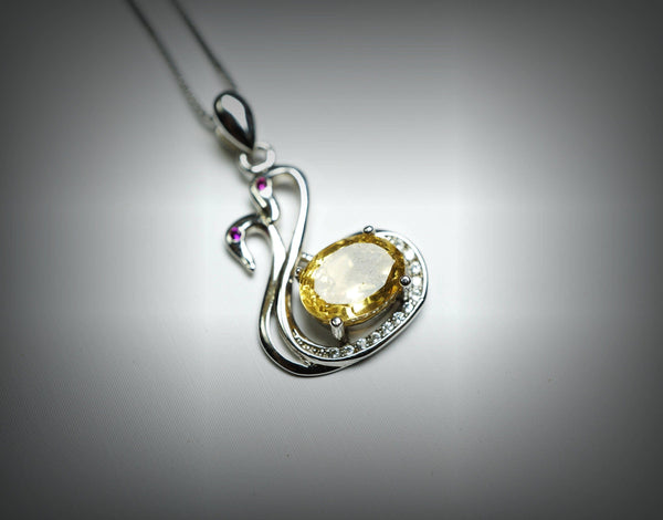 Discover our exquisite genuine citrine necklace, beautifully crafted in full sterling silver and designed as a charming couple of swans. This stunning piece features a natural citrine stone measuring 6x8mm, set in a sterling silver bezel that highlights its vibrant hues. The pendant itself stands at 0.9 inches in height, making it a delicate yet eye-catching addition to your jewelry collection.