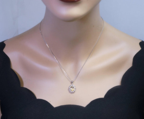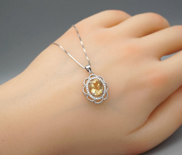 Genuine citrine necklace halo flower style