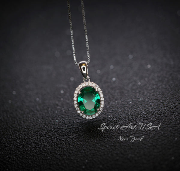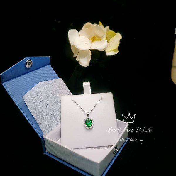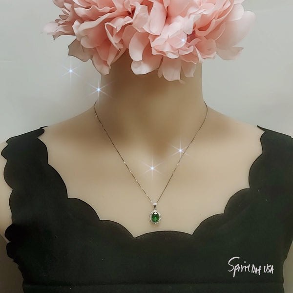 Dainty Emerald jewelry Diamond halo styleOval Cut