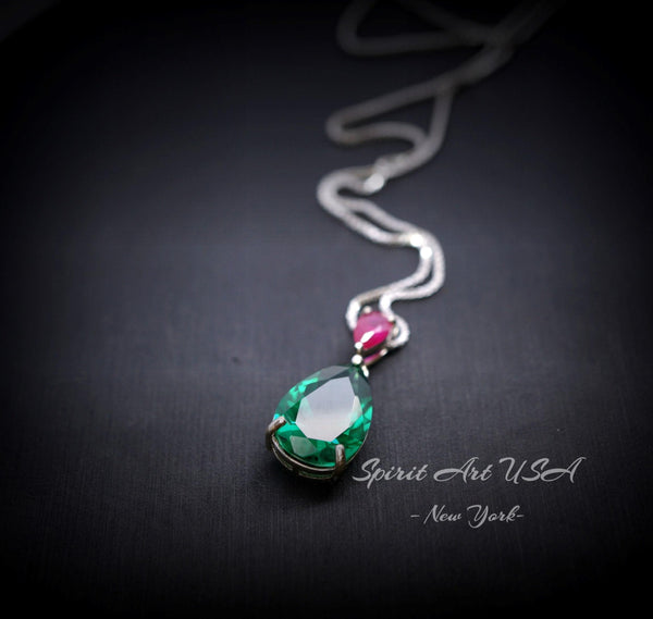 Materials: 925 sterling silver, emerald, ruby, 18kgp, rose gold.