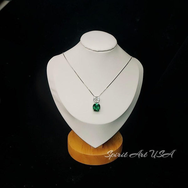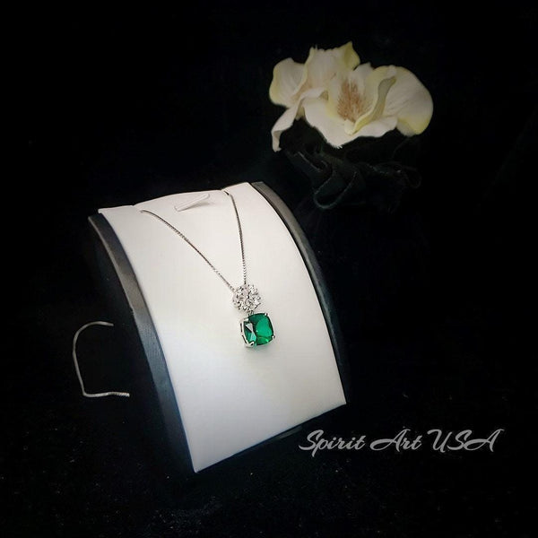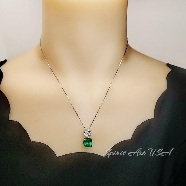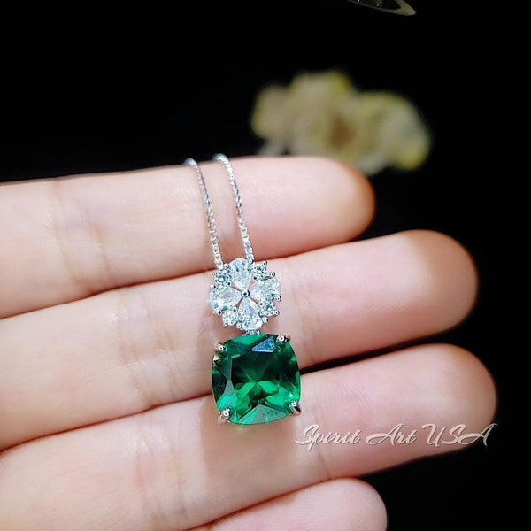 Large Cushion Green Emerald Jewelry Tiny Four-leaf clover Style