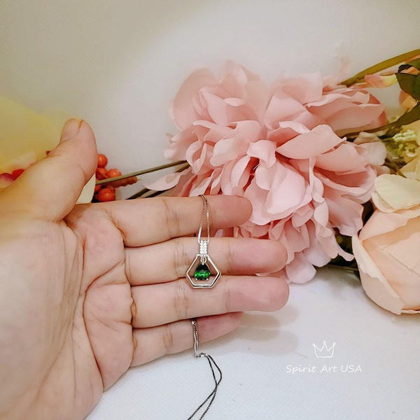 Tiny Green Emerald Jewelry Geometric Trigangle Style