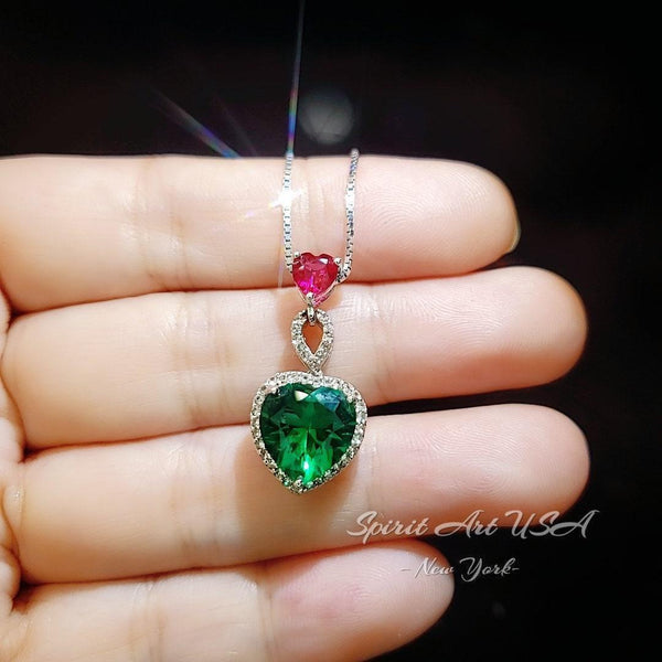 Emerald Ruby Double Heart Gemstone Jewelry