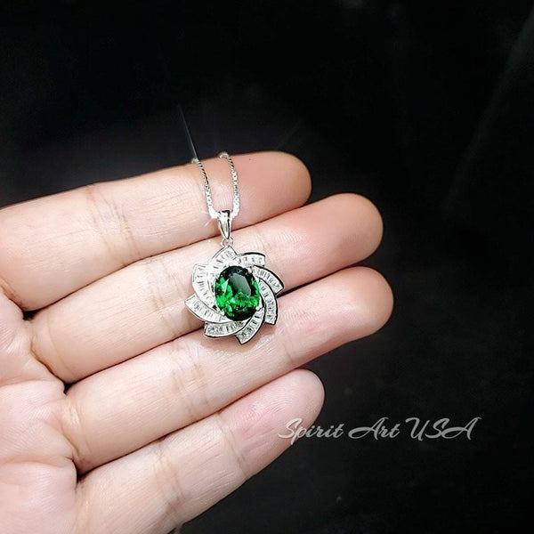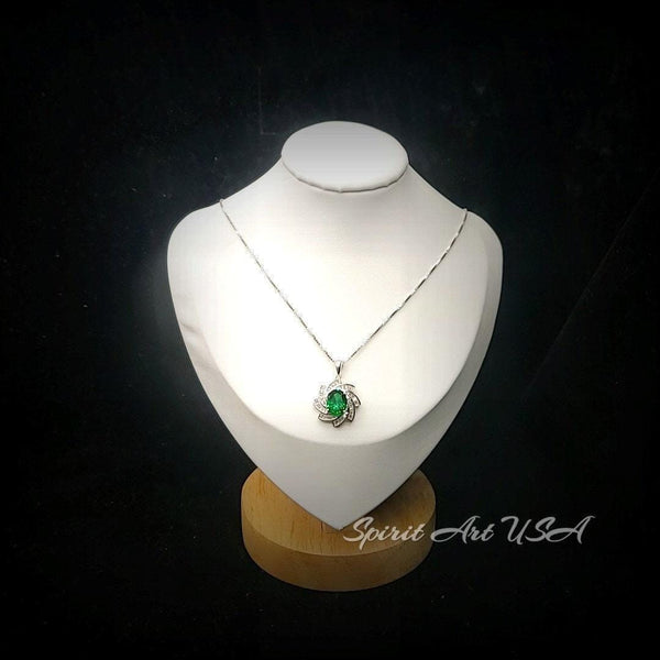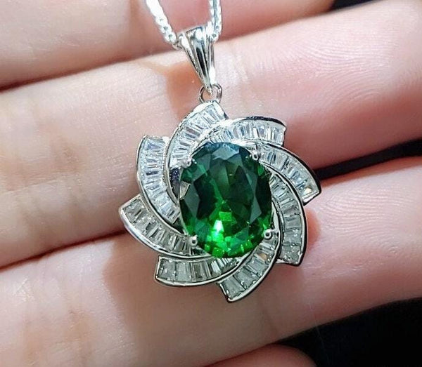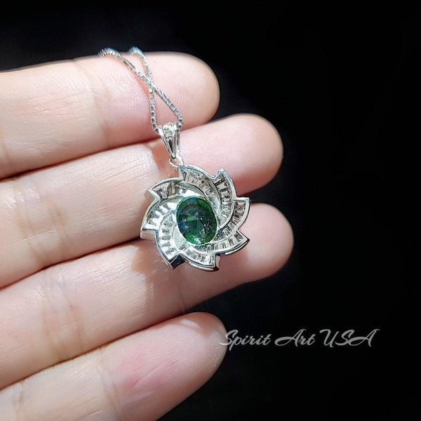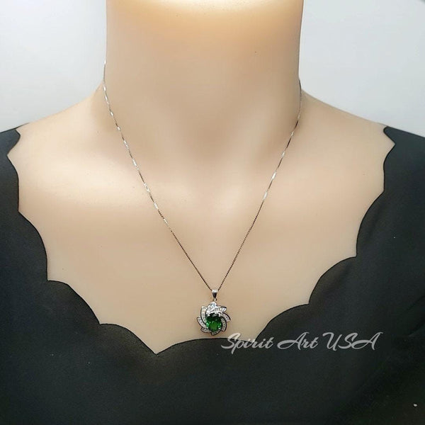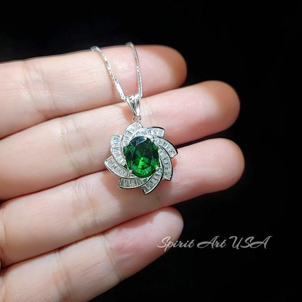 Green Emerald Necklace Gemstone Milky Way Spiral Pendant 18KGP Sterling Silver 2.8 CT Galaxy Energy Vortexes Windmill Emerald Jewelry #849