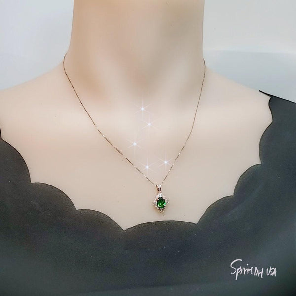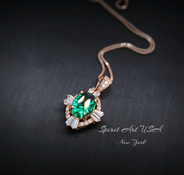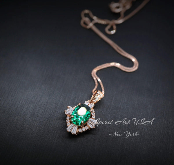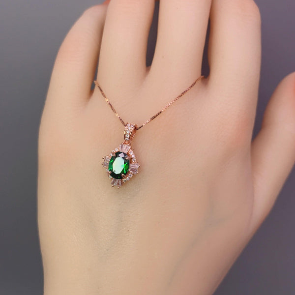 Green Emerald Necklace, Rose Gold coating 925 Sterling Silver Box Chain, Green Stone Emerald Jewelry #128