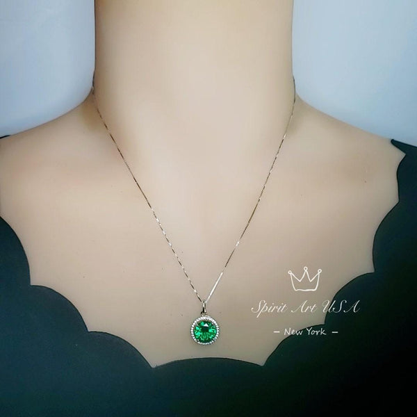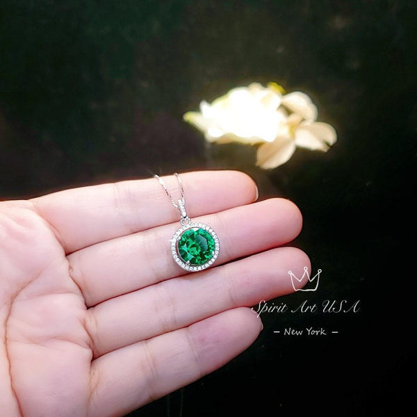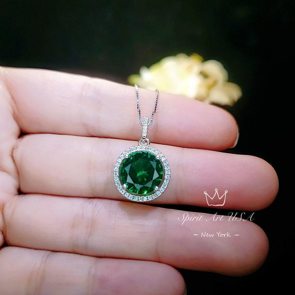 Large Emerald Jewelry 4 Ct sterling silver circle Style