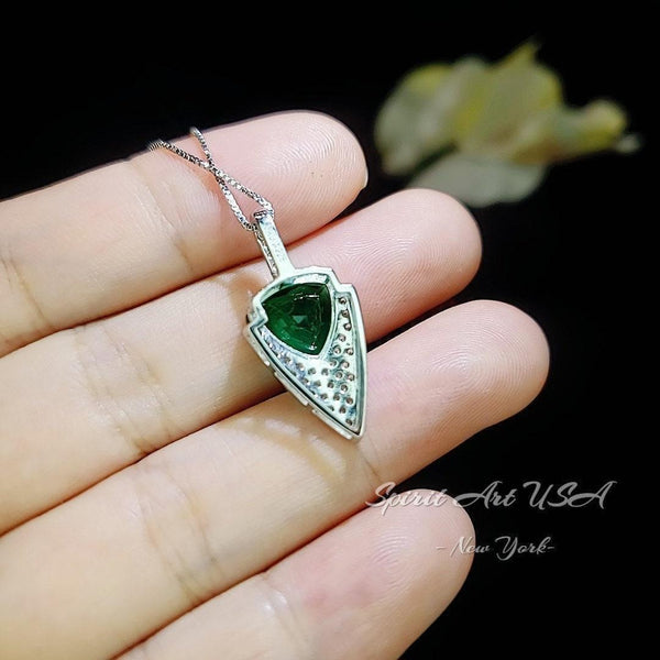 Trillion cut 10mm Triangle Emerald Jewelry inspired by Queen's sword