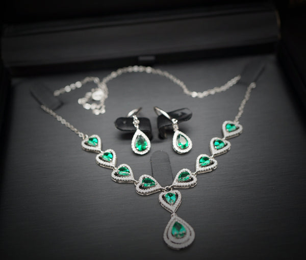 Luxury Emerald necklace set with Full sterling silver
