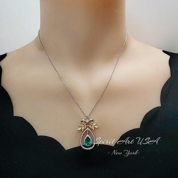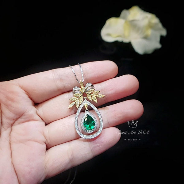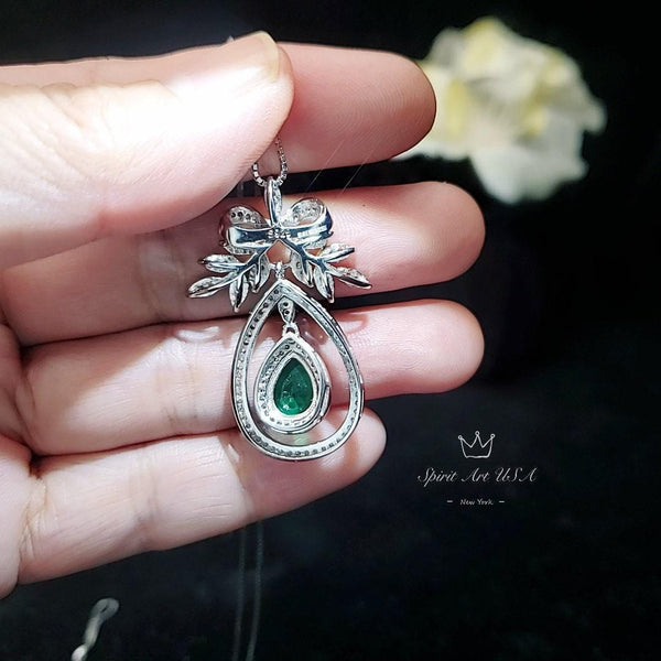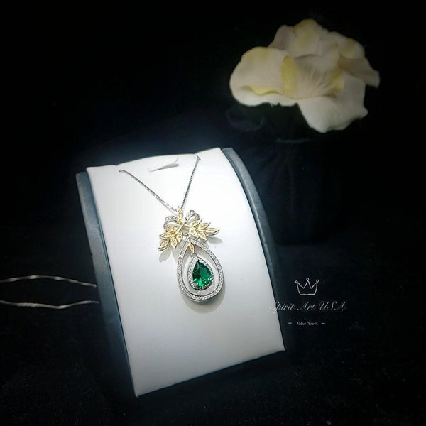 Large Teardrop Green Emerald Jewelry Olive branch style