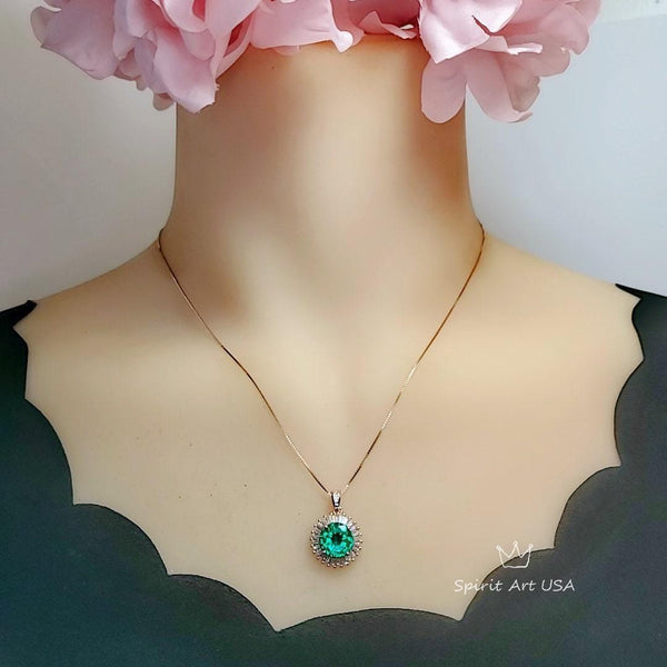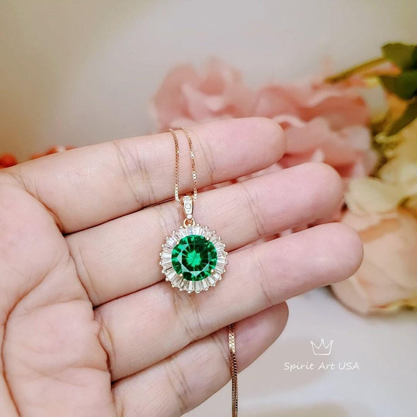 Large 3 ct Emerald Jewelry Rose gold sun Style