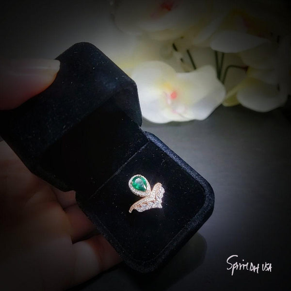 Materials: Emerald, Rose gold coated sterling silver, rose gold.