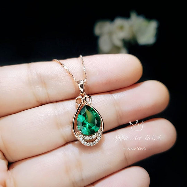Materials: emerald, Rose gold sterling silver, rose gold.