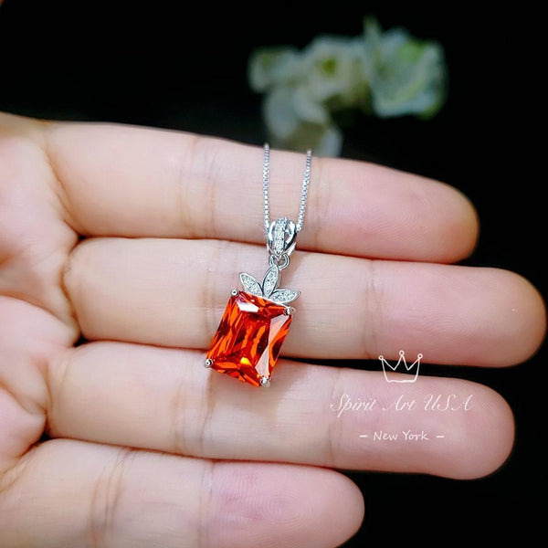 Large Rectangle Orange Sunstone sapphire Jewelry