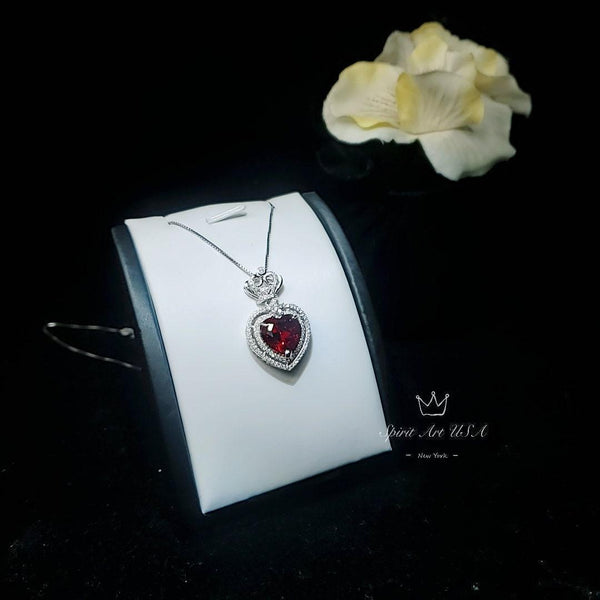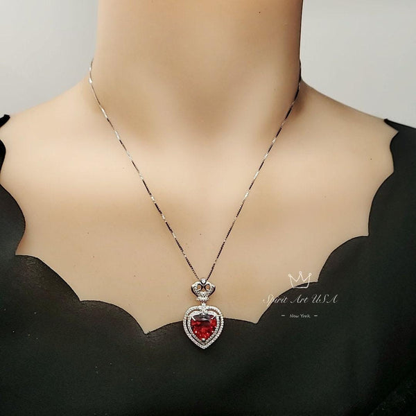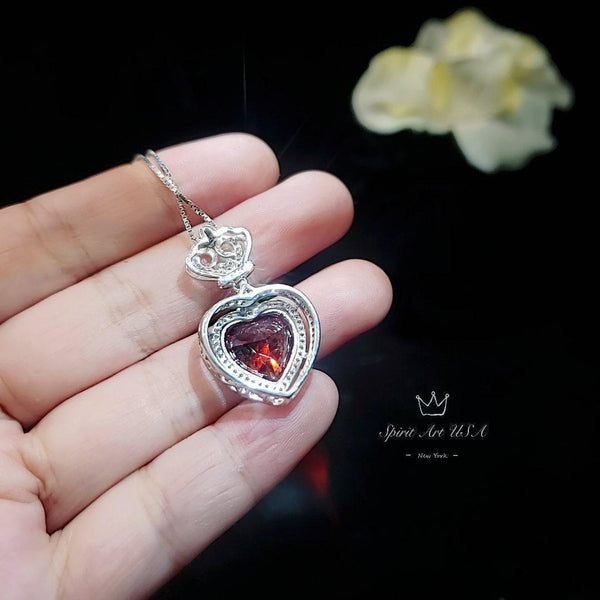Large Garnet Heart Jewelry Double Halo Heart Pendant