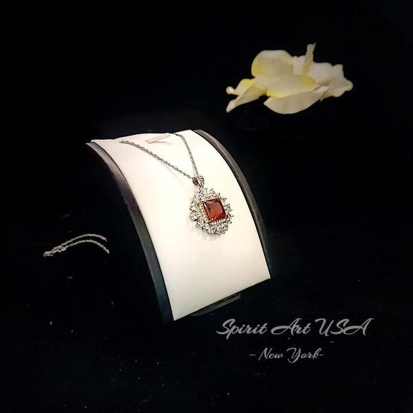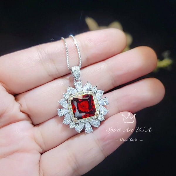 Large Square Red Garnet Jewelry gordeous diamond surround Style