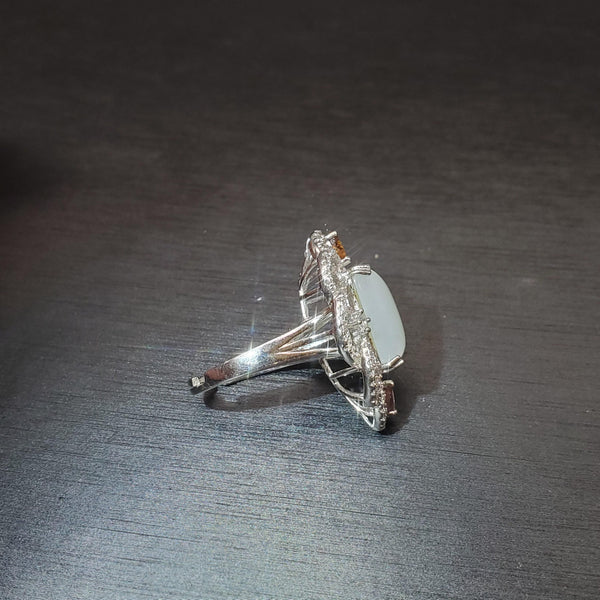Genuine White Jade Ring Sterling Silver Adjustable Jade Jewelry 1075