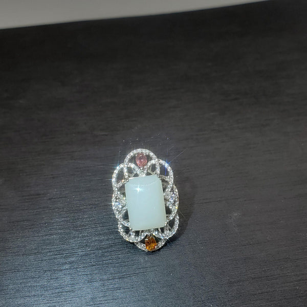 High quality 100% natural white jade Ring sterling silver