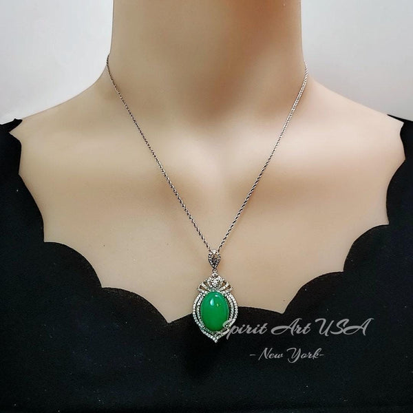 Large Green Jade Jewelry Sterling Silver diamond crown flower Style