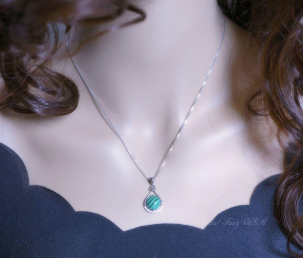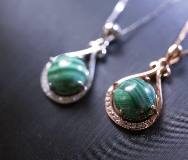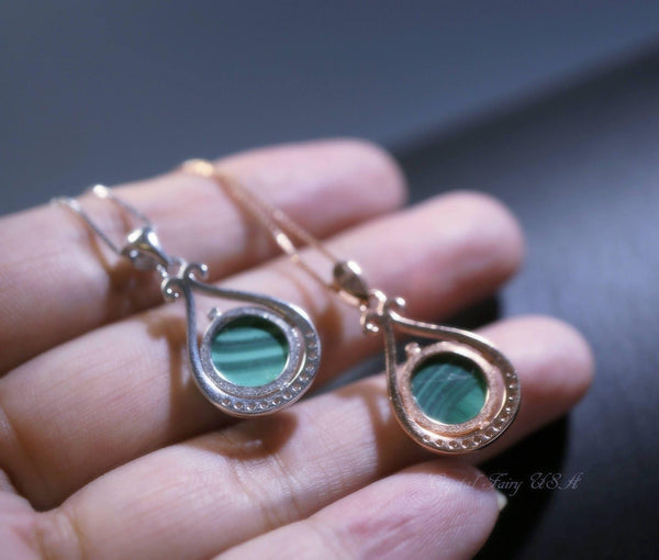 Green Malachite Fine Gemstone Necklace rose gold made with sterling silver