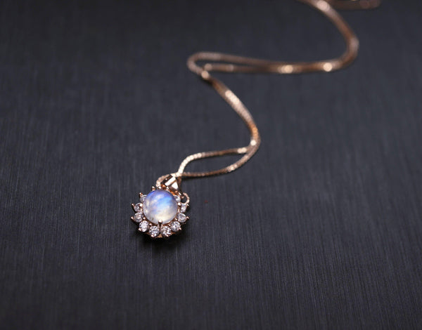 Genuine tiny rose gold moonstone necklace