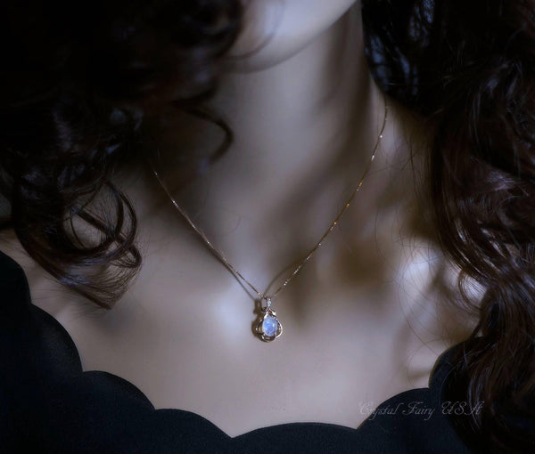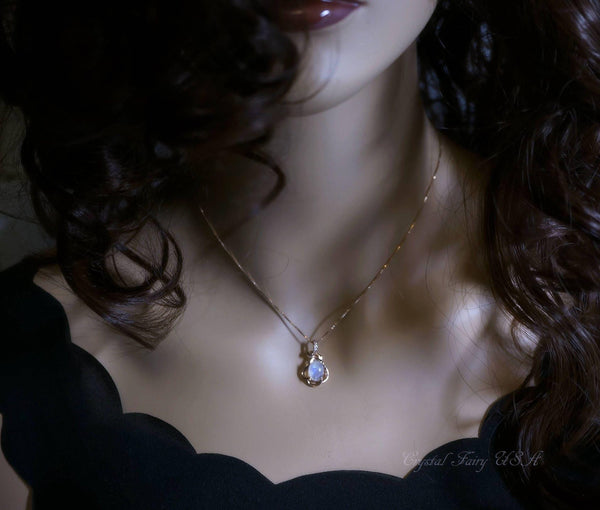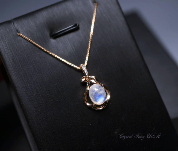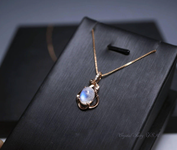 Genuine tiny rose gold moonstone necklace