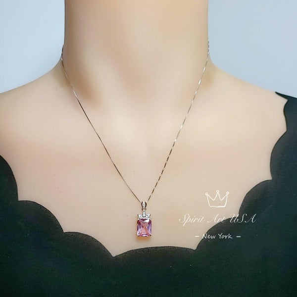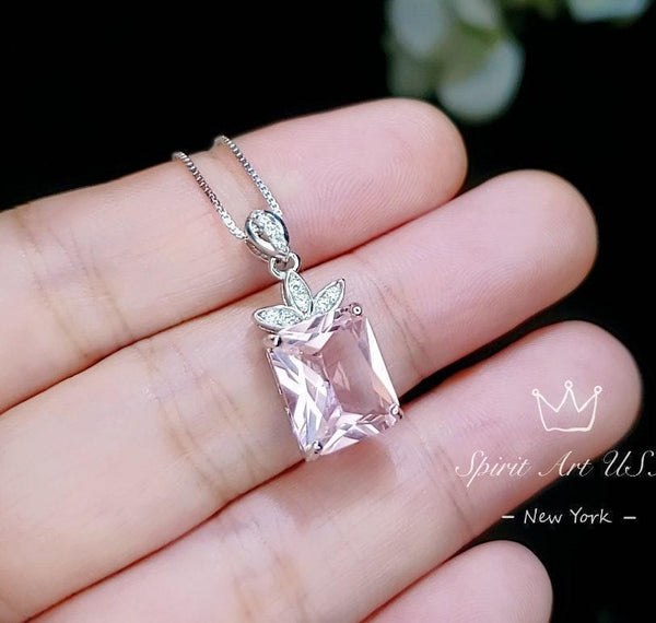 Morganite Necklace - Large Rectangular Pink Morganite Pendant - Royal Flower - Sterling Silver - 5 Ct Rose Color Lab Morganite Jewelry #665